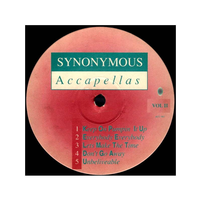 Synonymous Accapellas - Vol 1 feat Take Me Away / Rock The House / Touch Me / Keep On Pumpin It Up