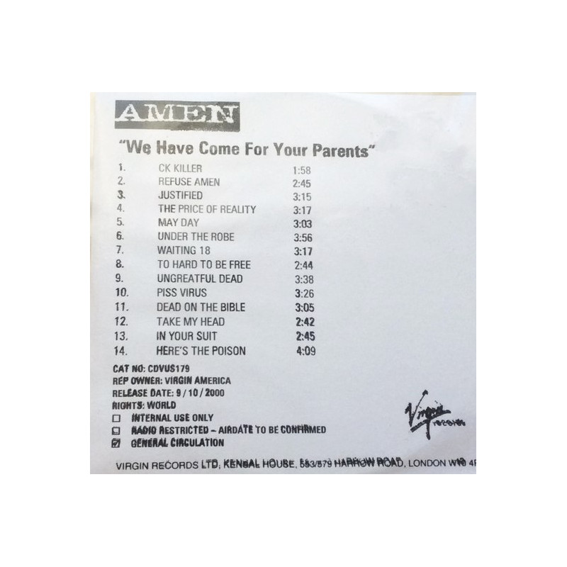 Amen - We have come for your parents (14 Track CD Promo)