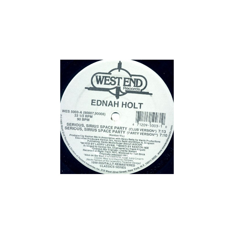 Ednah Holt - Serious Sirius Space Party | Vinyl | 1999 | US West End Reissue | Larry Levan Mix