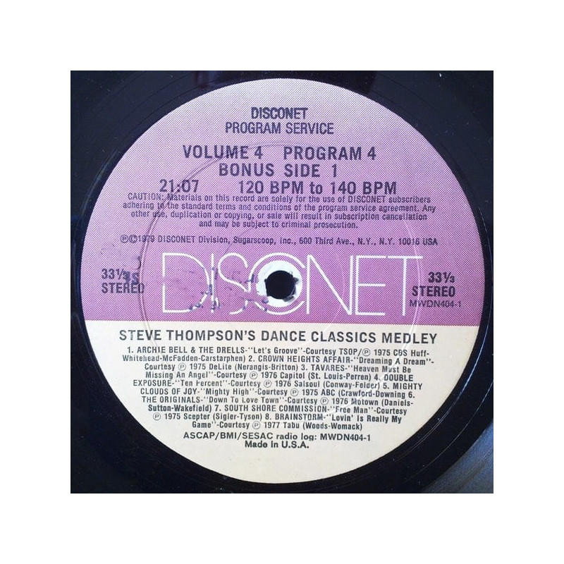 Disconet Bonus Disc - Steve Thompsons Dance Classics Medley | Vinyl | 1981 | US Disconet | DJ Subscription Disc