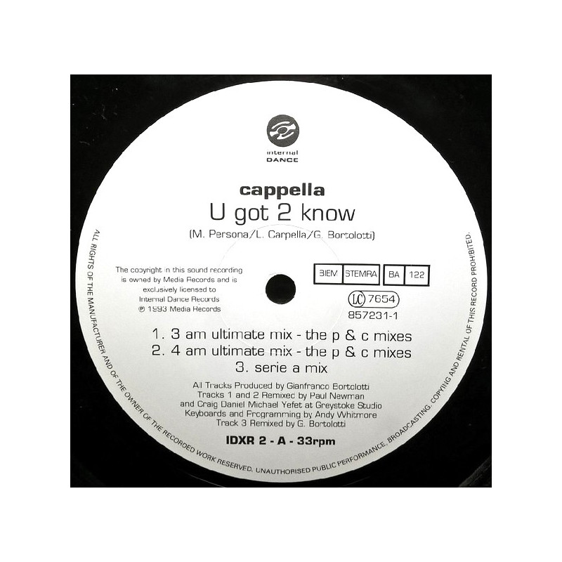 Cappella - U Got 2 Know (Revisited) 3am Ultimate Mix / 4am Ultimate Mix / Serie A Mix / RAF Remix / DJ Professor Mix / Martini Trance