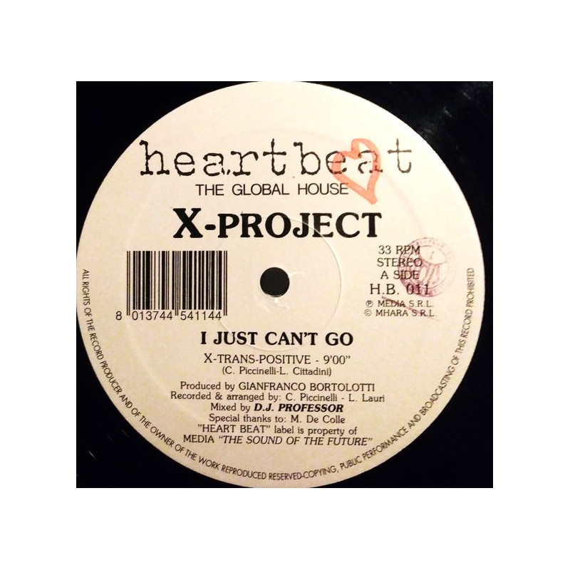 X Project - I Just Cant Go | Vinyl | 1993 | Italian Heartbeat
