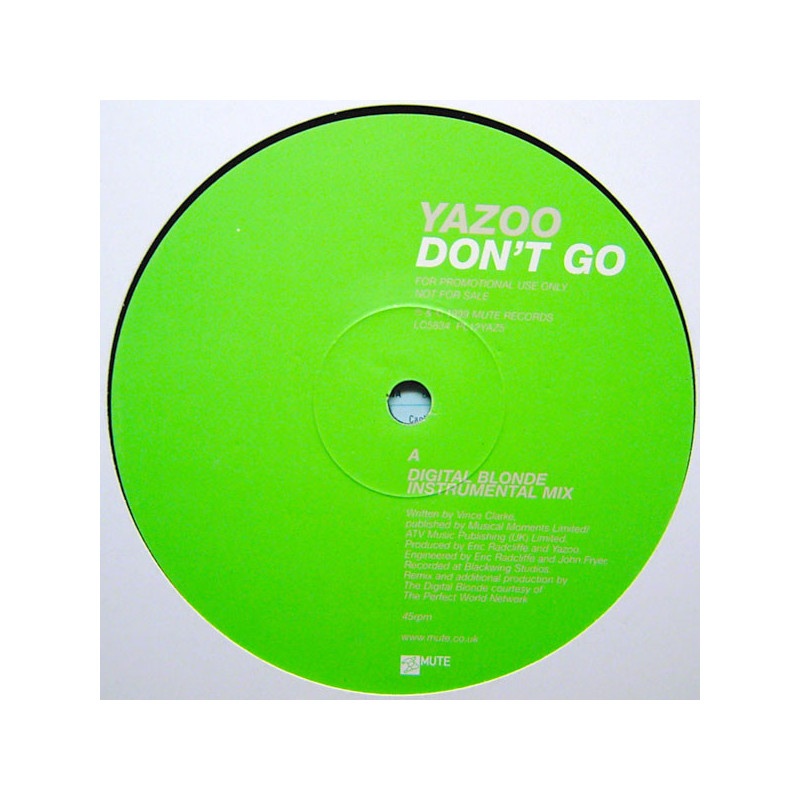Yazoo - Dont Go (Digital Blonde Instrumental Mix) One Sided Promo
