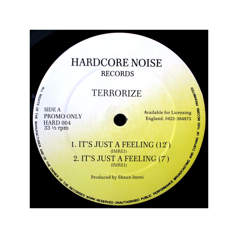 Terrorize - Its Just A Feeling (12" Mix / 7" Mix) / Clap Your Hands / Passion (Original Promo, Has 1 Inaudible Paper Scratch)