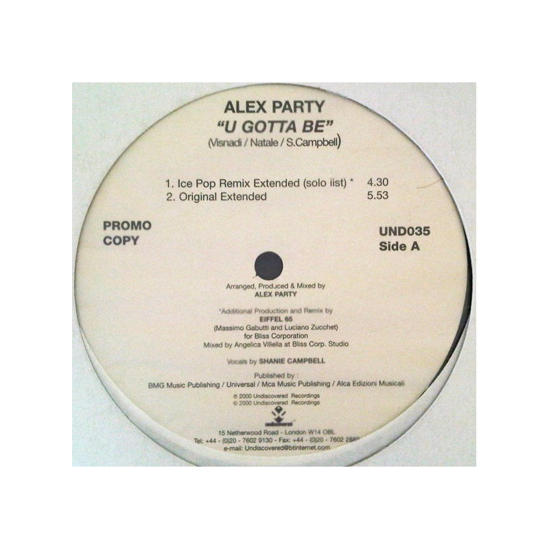 Alex Party - U Gotta Be | Vinyl | 2000 | Undiscovered Promo