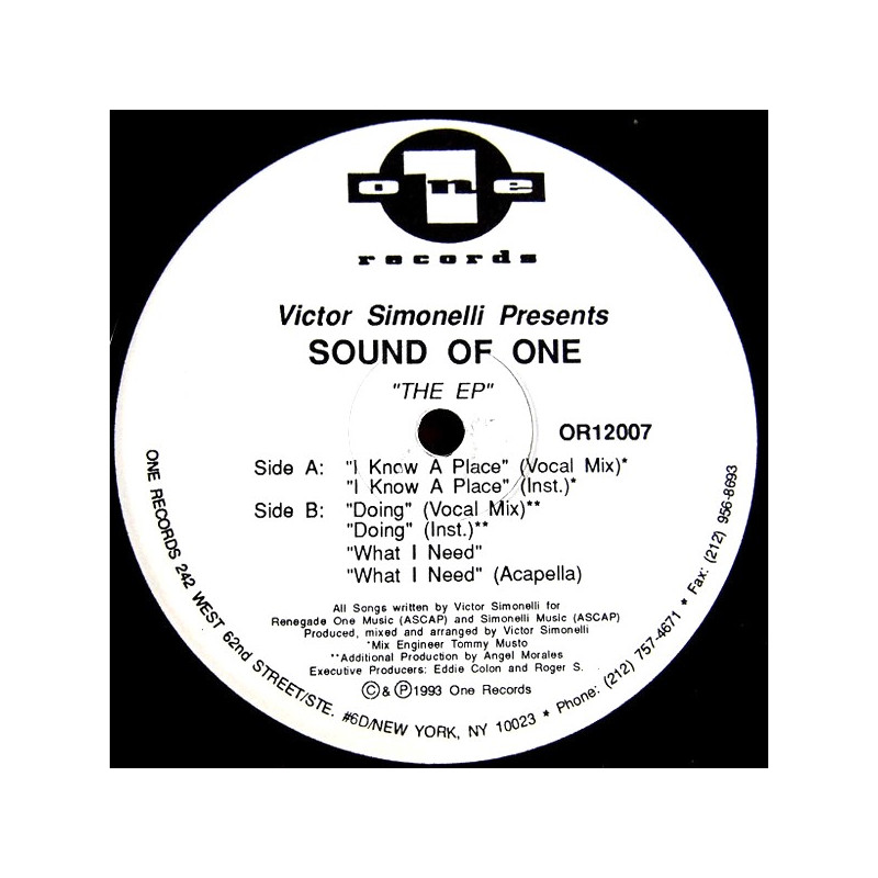 Sound Of One - I Know A Place | Vinyl | 1993 | US One | Victor Simonelli