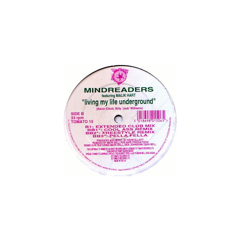 Mindreaders Featuring Malik Hart - Living My Life Underground | Vinyl | 1993 | Tomato