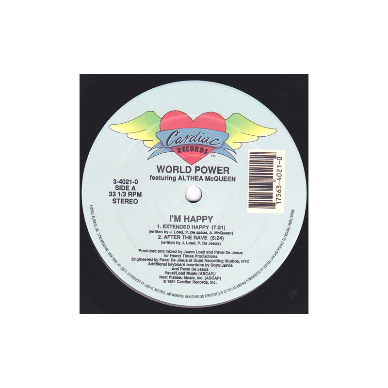 World Power Featuring Althea McQueen -Im Happy | Vinyl | 1991 | US Cardiac