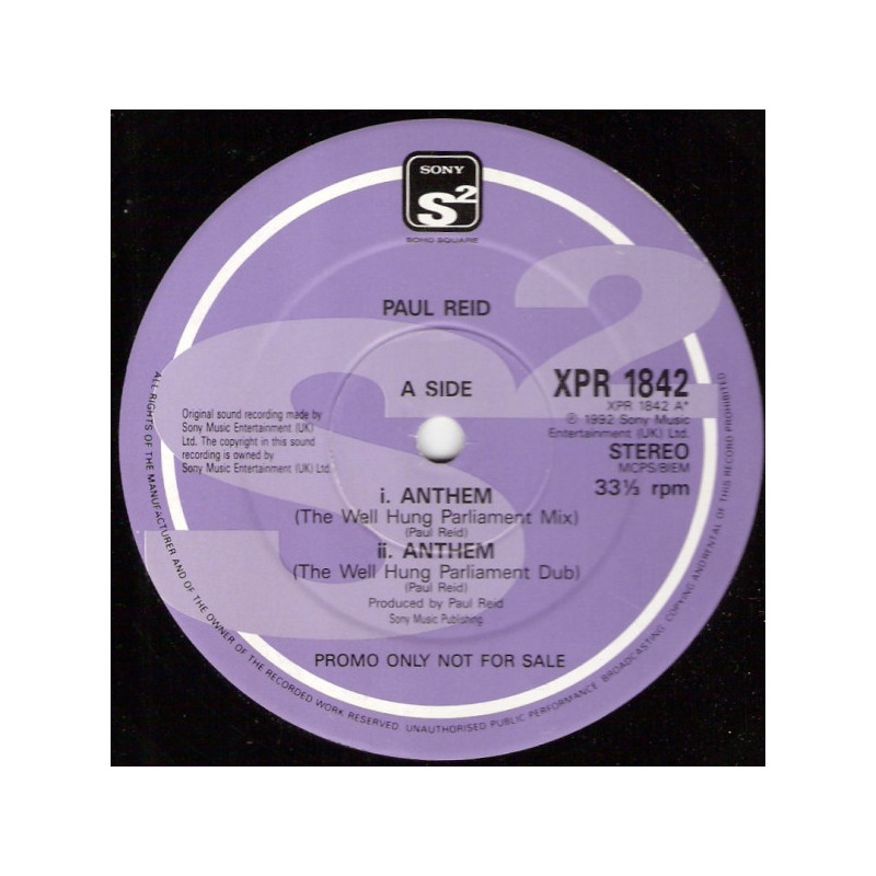 Paul Reid - Anthem | Vinyl | 1992 | Sony Promo