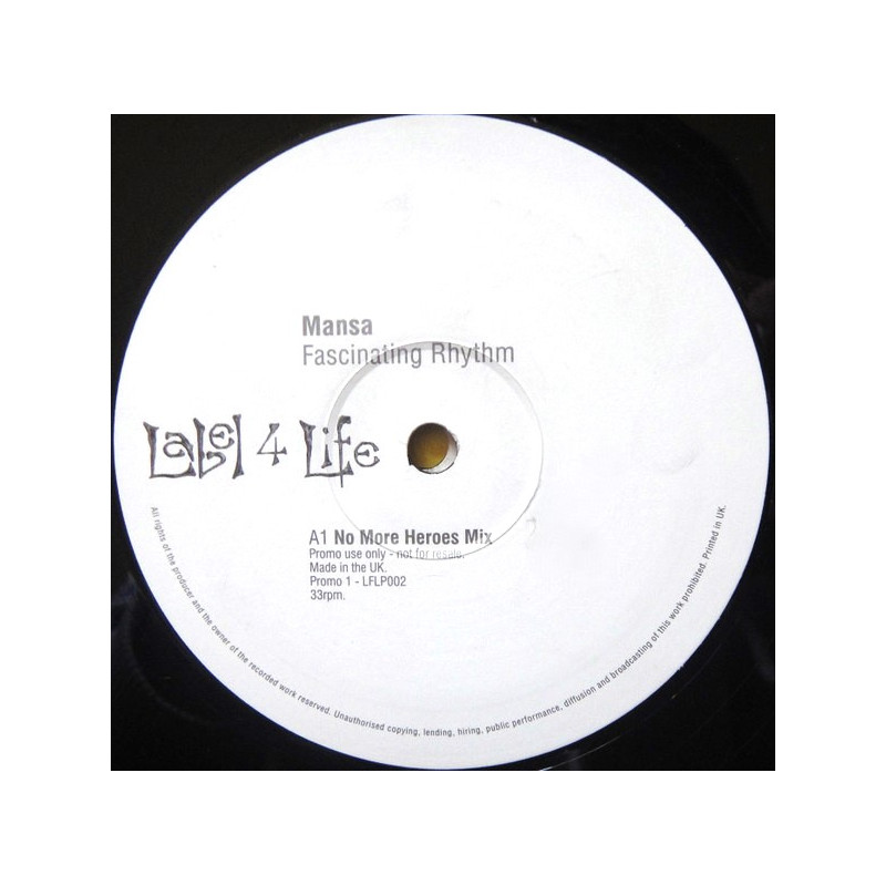 Mansa - Fascinating Rhythm (No More Heroes Mix / Instrumental Mix / Original Mix) Vinyl Promo
