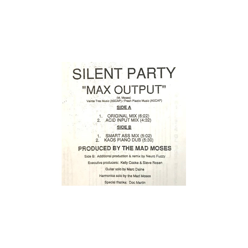 Silent Party - Max Output (Original / Acid Input Mix / Smart Ass Mix / Kaos Piano Dub) Vinyl Promo