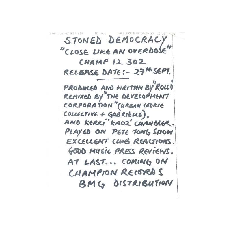 Stoned Democracy - Close | Double Vinyl | 1993 | Champion Promo