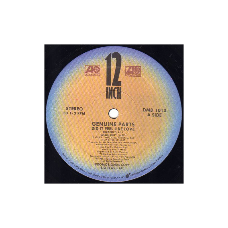 Genuine Parts - Did It Feel Like Love | Vinyl | 1986 | US Atlantic Promo