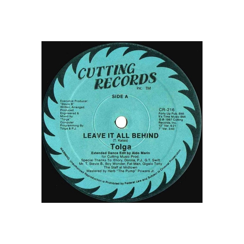 Tolga - Leave It All Behind | SEALED Vinyl | 1987 | US Cutting