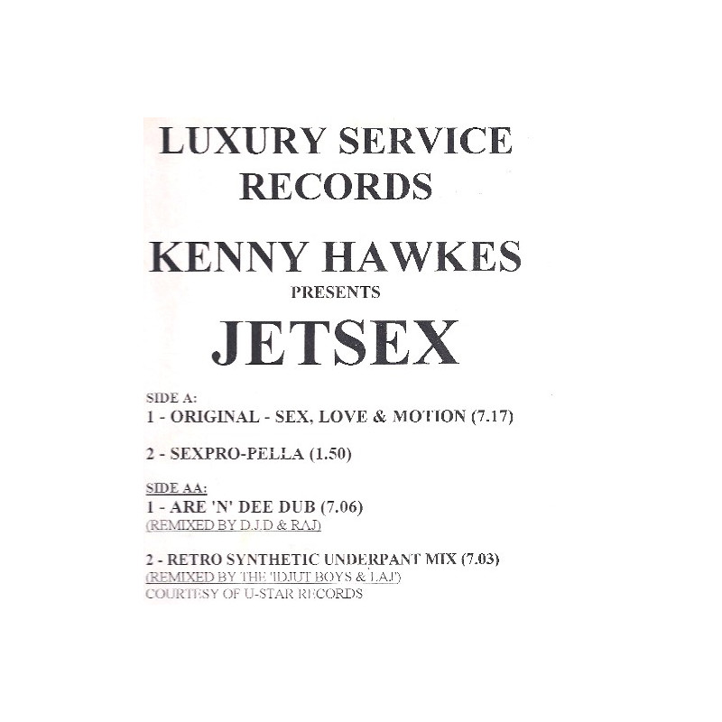 Kenny Hawkes - Jetsex | Vinyl | 1996 | Luxury Service Promo
