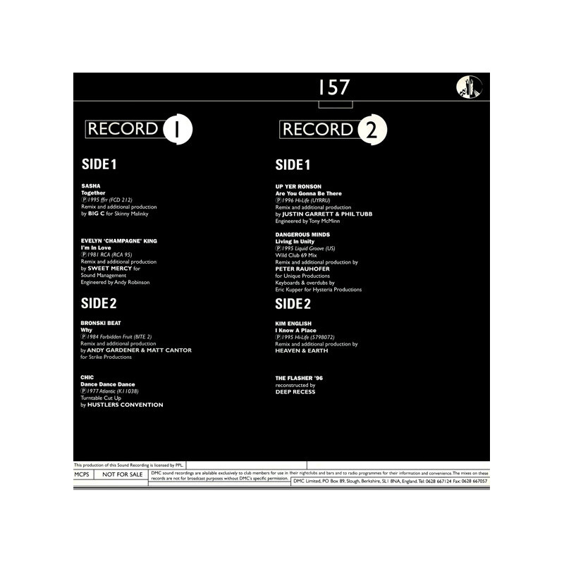 DMC 157 - 2 X 12inch featuring Evelyn King - Im In Love (Sweet Mercy Remix) / Chic - Dance Dance Dance (Hustlers Convention Remix) / Sasha - Together (Big C Remix) / Bronski Beat - Why (Strike Remix) Plus 4 More Exclusive Remixes
