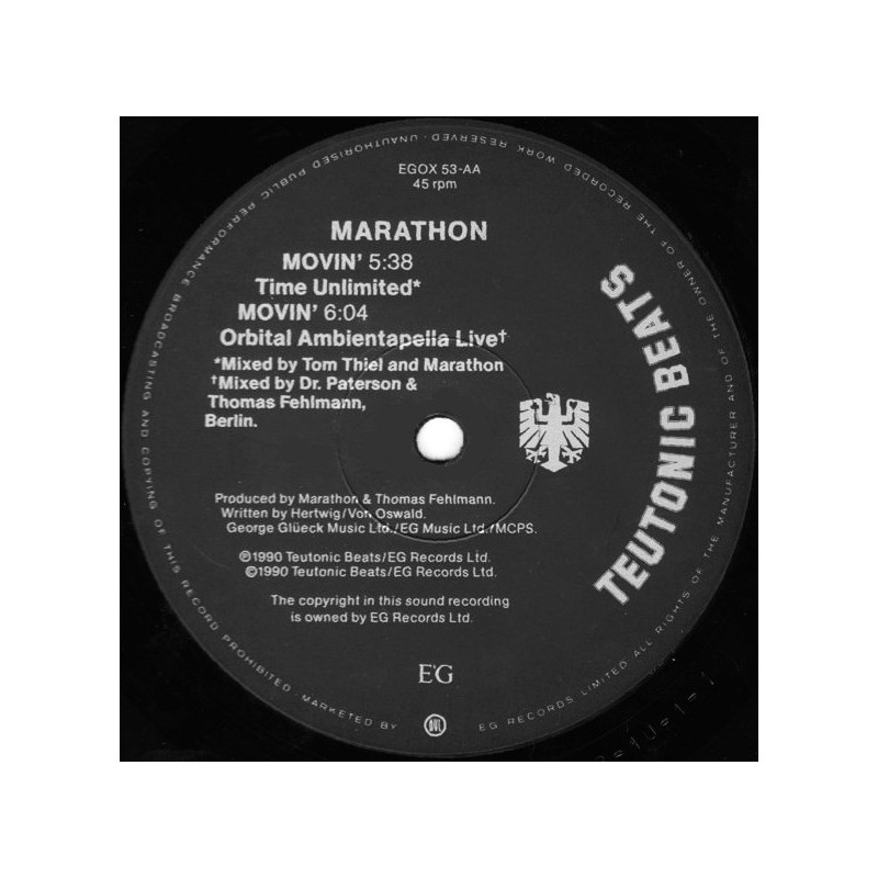 Marathon - Movin' (Trans Luna Injection Burn Mix / Unlimited Mix / Orbital Ambientapella Live Mix) 12" Vinyl Record
