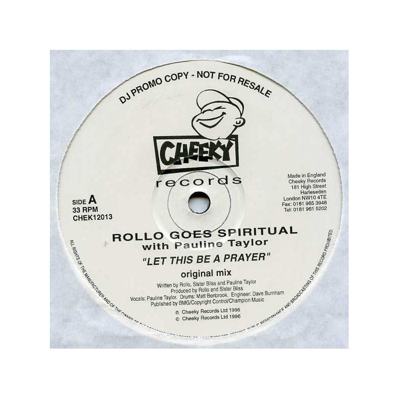 Rollo Goes Spiritual with Pauline Taylor - Let this be a prayer | Vinyl | 1996 | Cheeky | Dounblepack Promo