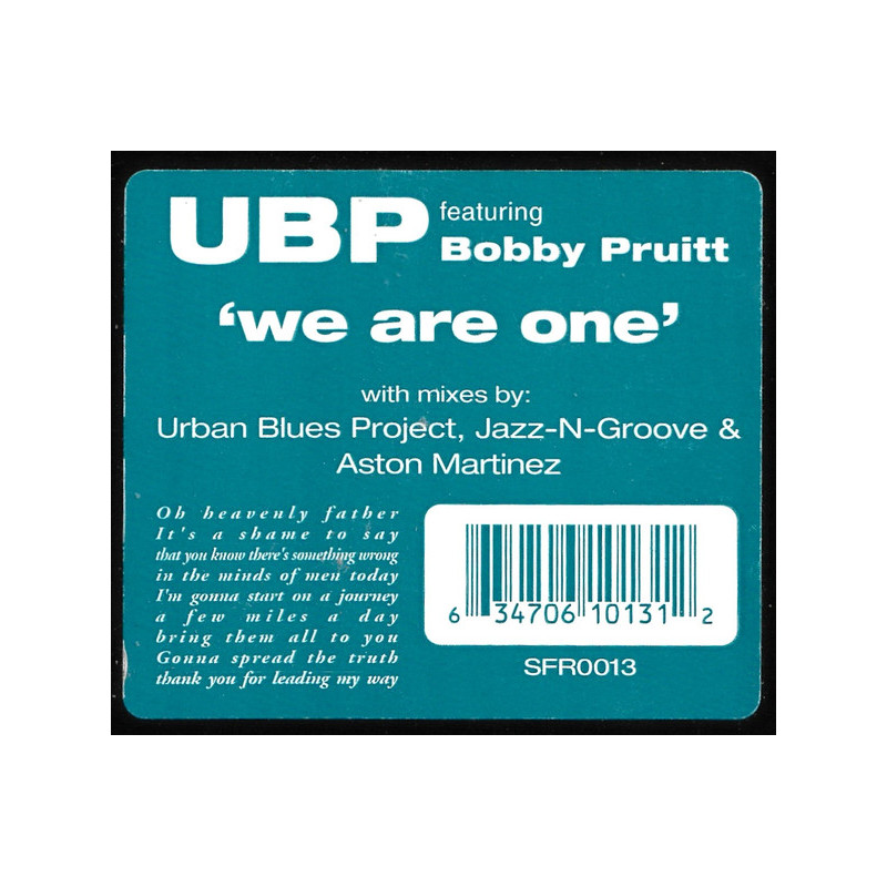 Urban Blues Project feat Bobby Pruitt - We Are One (Double Vinyl) 2 Jazz N Groove Mixes / 2 UBP Mixes / 2 Aston Mixes / Handsupappella
