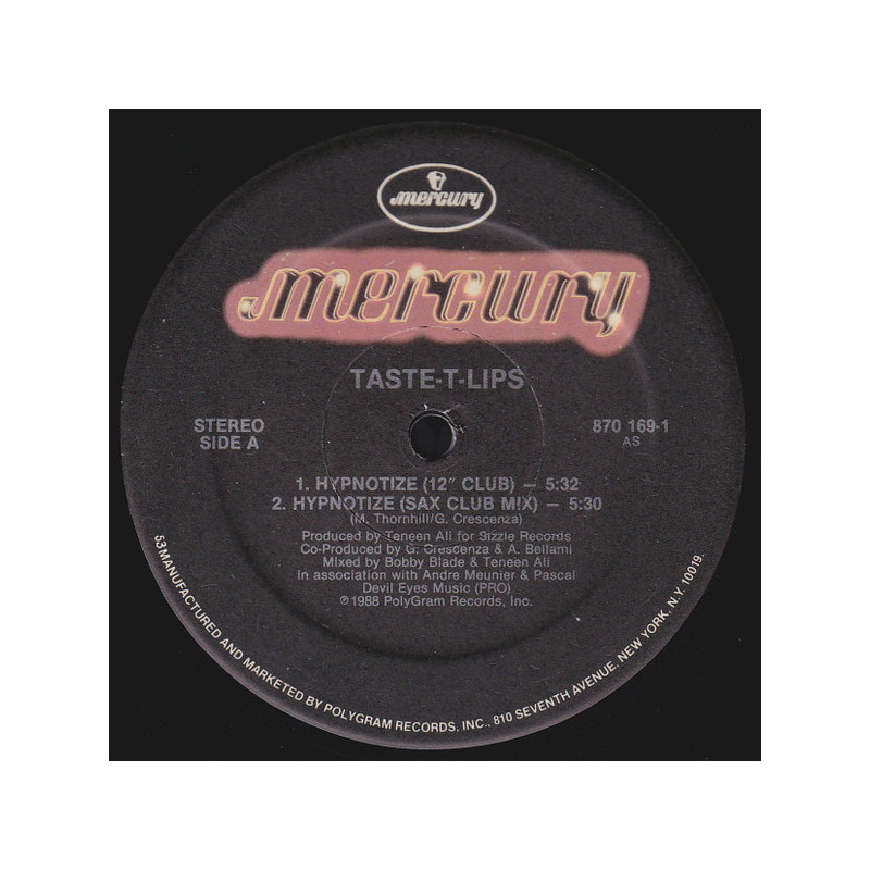 Taste T Lips - Hypnotize | Vinyl | 1988 | US Mercury Promo