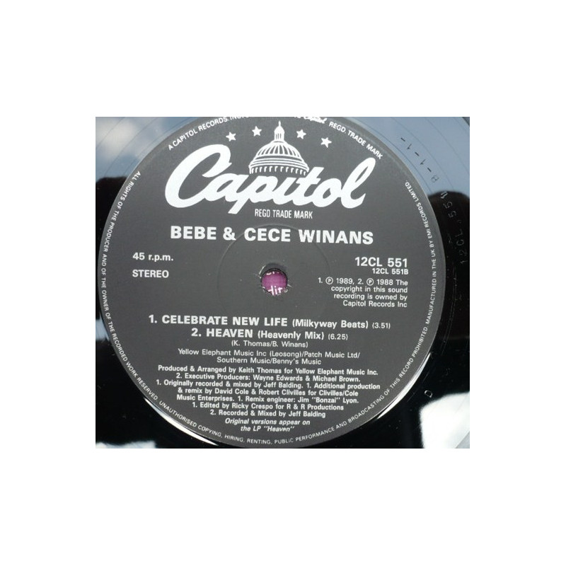 Be Be & Ce Ce Winans - Heaven (Heavenly Mix) / Celebrate New Life (2 Mixes) 12" Vinyl Record