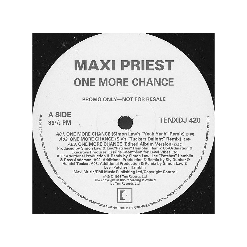 Maxi Priest - One More Chance | Vinyl | 1993 | Ten Promo