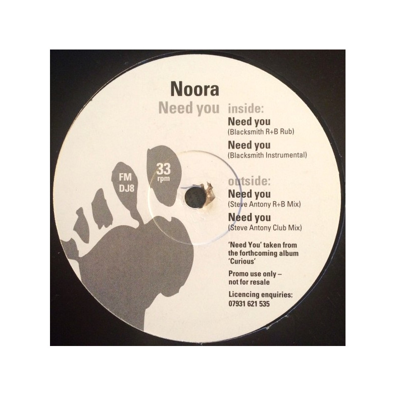 Noora - Need You (Blacksmith R&B Rub / Blacksmith Instrumental / Steve Anthony R&B Mix / Steve Anthony Club Mix) Vinyl Promo
