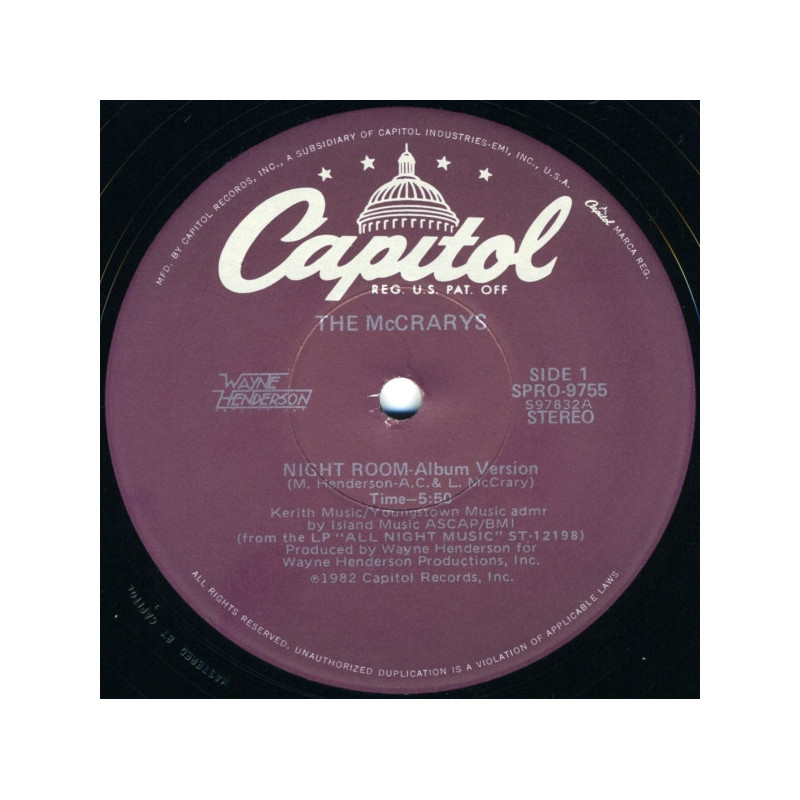 McCrarys - Night Room | Vinyl | 1982 | US Capitol