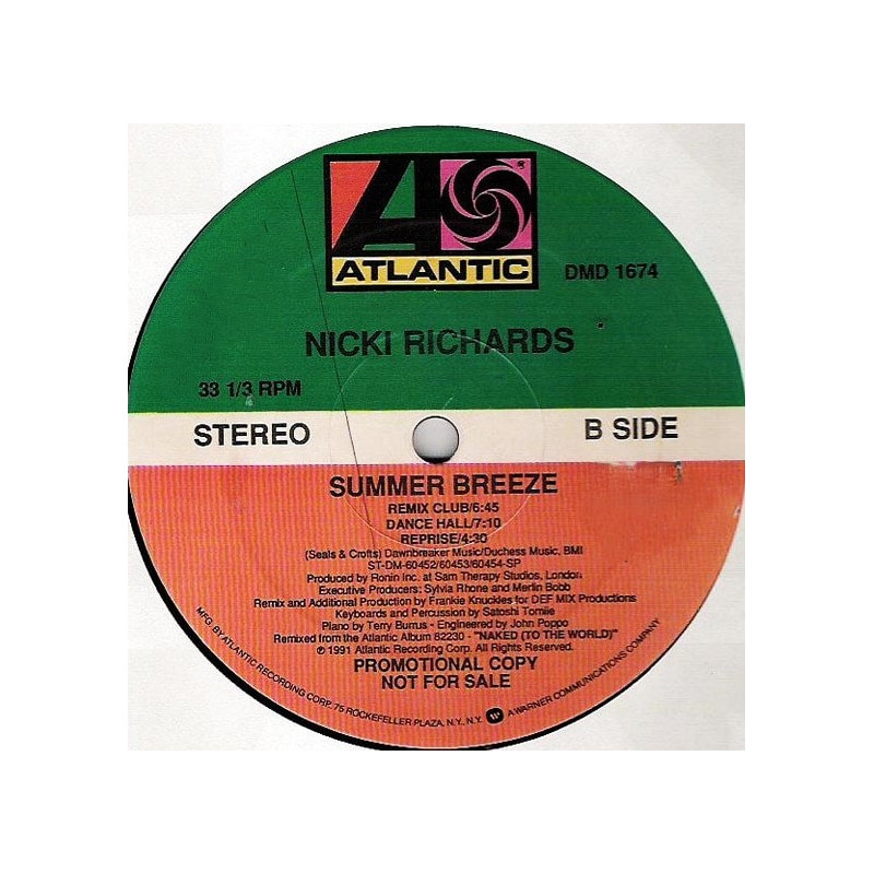 Nicki Richards - Summer Breeze (Extended / Big Beat Hip Hop Mix / Radio Edit / Frankie Knuckles Club Remix) Vinyl Promo