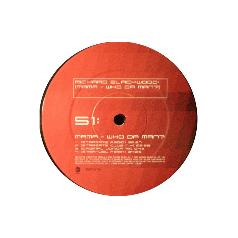 Richard Blackwood - Mama Who Da Man (Stargate Club Mix / Emmanuel Remix / Original Junior Mix / Acappella) Vinyl Promo