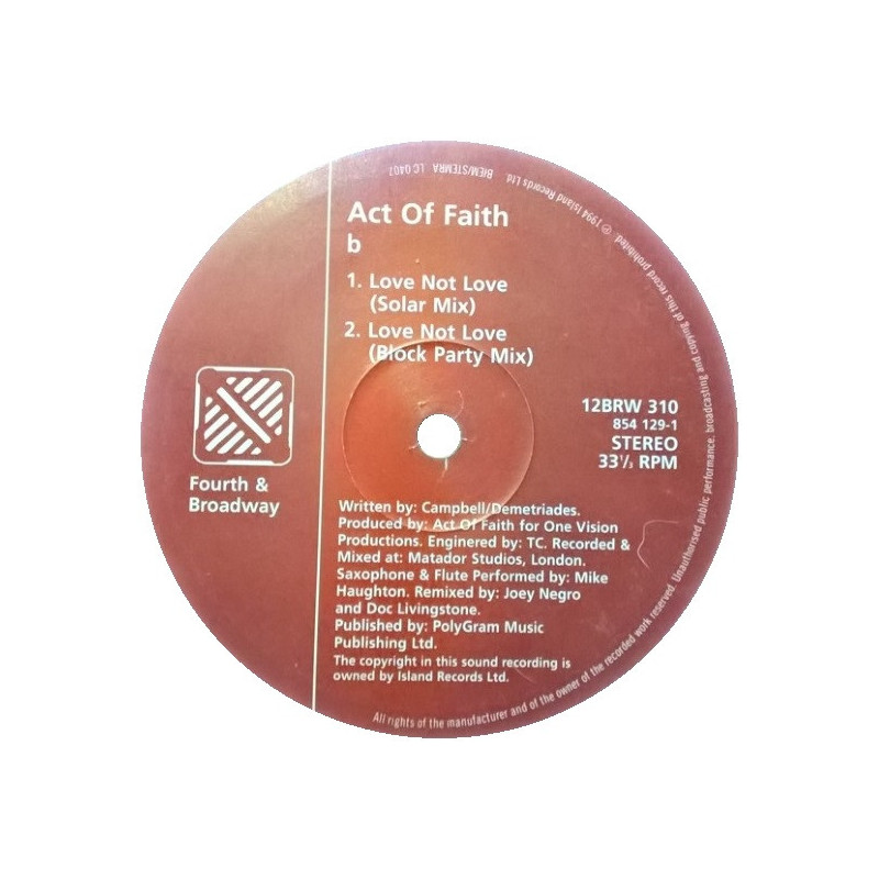 Act Of Faith - Love Not Love | Vinyl | 1994 | 4th & Broadway | Joey Negro Is Dave Lee