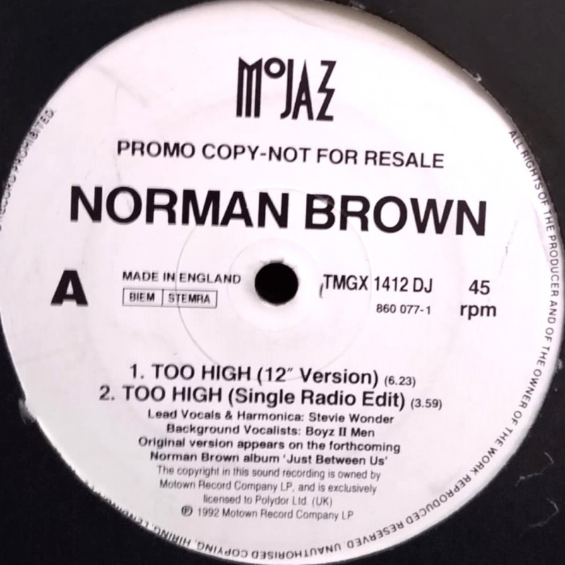 Norman Brown - Too High | Vinyl | 1992 | MoJazz Promo | Cover Of The Stevie Wonder Classic.