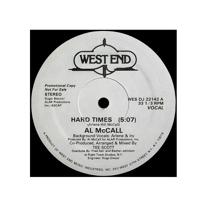 Al McCall - Hard Times | Vinyl | 1982 | US West End Promo | Mixed By Tee Scott
