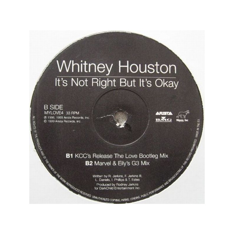 Whitney Houston - Its Not Right But Its Okay (KCC Release The Love Bootleg Mix / Marvel & Eilys G3 Mix) / My Love Is Your Love (2 Marvel & Eily Mixes) Vinyl Promo
