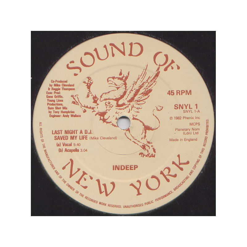Indeep - Last Night A DJ Saved My Life | Vinyl | 1982 | Sound Of New York