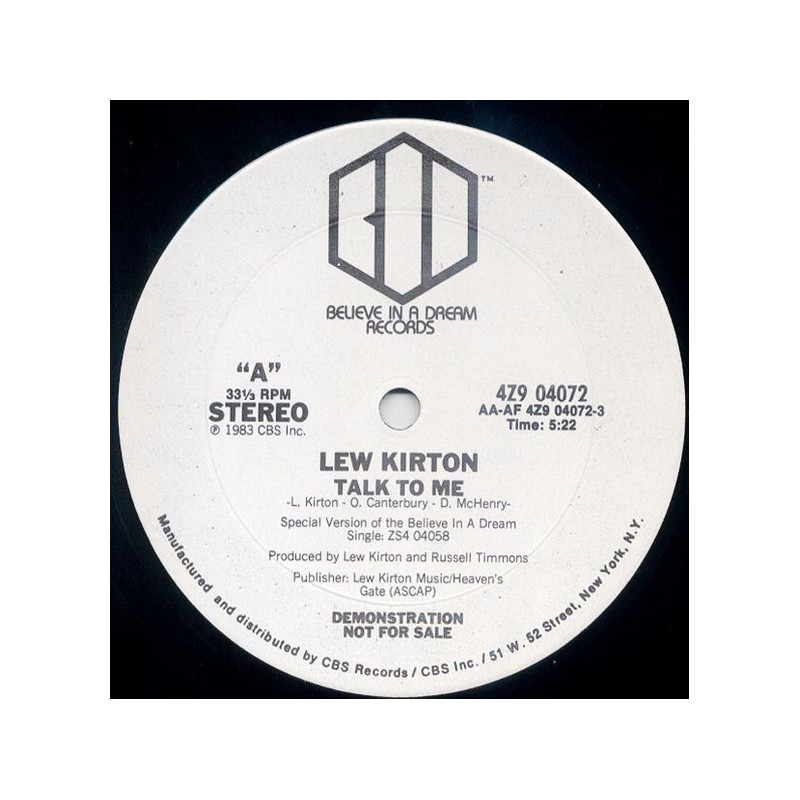 Lew Kirton - Talk To Me | Vinyl | 1983 | US Believe In A Dream Promo | Still In Shrink Wrap
