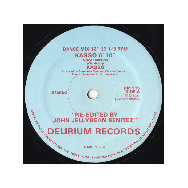 Kasso - Kasso (Jellybean Vocal Dance Mix) Still In Shrink Wrap