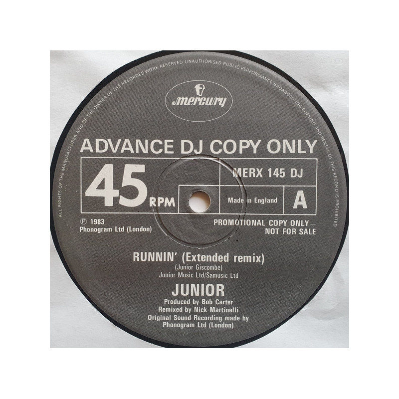 Junior - Runnin | Vinyl | 1983 | Mercury Promo