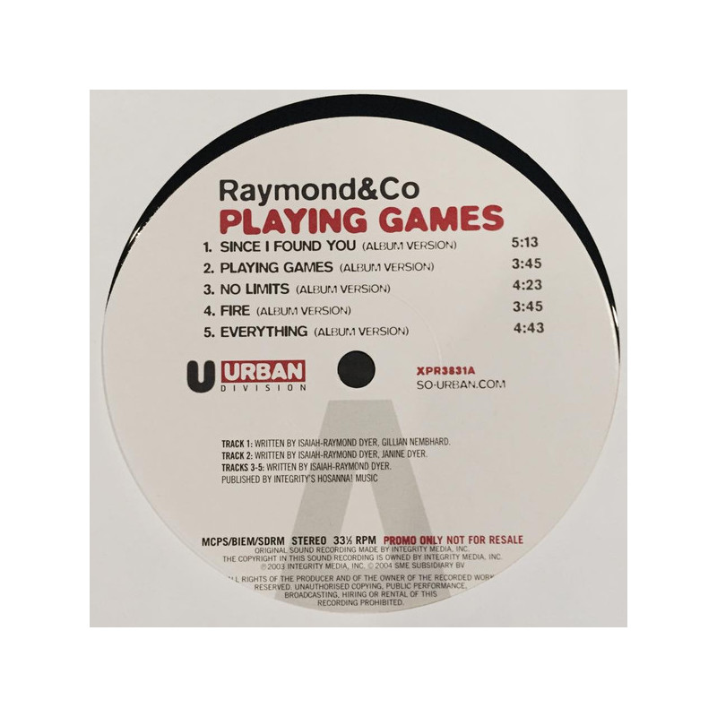 Raymond & Co - Playing games LP featuring Since i found you / Playing games / No limits / Fire / Everything / Give him all da praise / Miracles / Come follow me / Whadduya know / No not one (10 Track Promo LP)