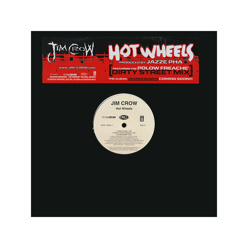 Jim Crow - Hot Wheels (Street Mix / Clean Street Mix / Acappella / LP Version / Inst / Radio Mix) 12" Vinyl Promo