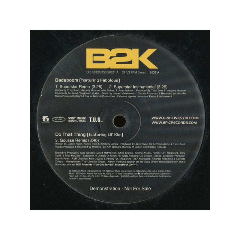 B2K - Badaboom featuring Fabolous (Superstar Remix / Superstar Instrumental / Hood Remix / Hood Instrumental) / Do that thing featuring Lil Kim (Gousse Remix / Gousse Instrumental) Promo